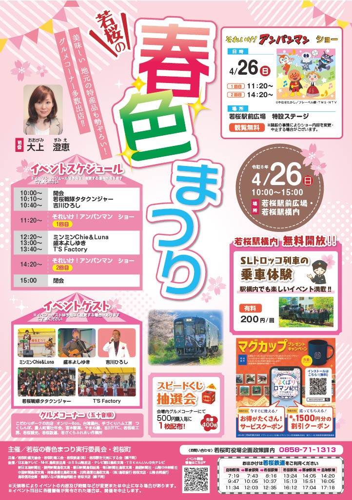 2026年4月26日(日)10:00~15:00に、若桜の春色まつりが開催されます。